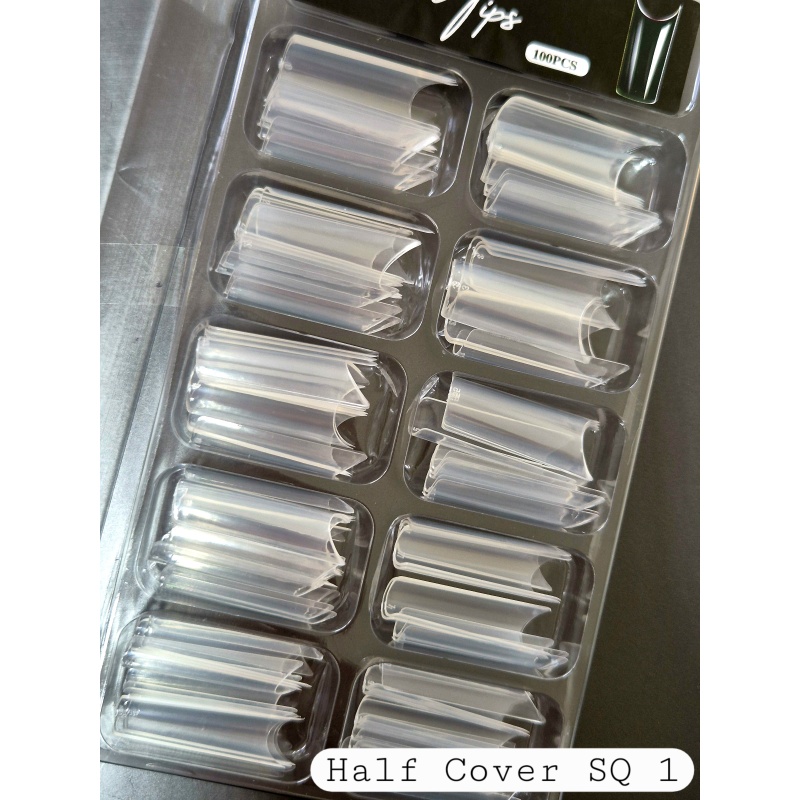 Küünetipid 100 tükki karbis Half Cover Square nr. 1 + 2g küüneliim